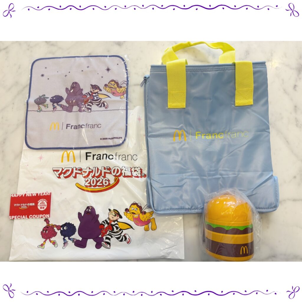 Francfrancとの初コラボ、今年の注目はビッグマックスープジャー、ビッグな保温・保冷バッグ、オリジナルアイテム全3点に商品無料券(最大合計3,910円相当)が入って、税込3,900円。
