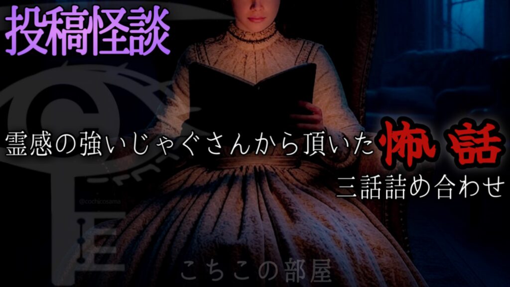 投稿怪談詰め合わせ 2025年12月5日(金) YouTubeチャンネルこちこの部屋に怪談朗読をアップしました。 今回の怖い話は、投稿怪談‼️ これまでに語ってきた「霊感の強いじゃぐさんから頂 … 続きを読む 霊感の強いじゃぐさんから頂いた怖い話