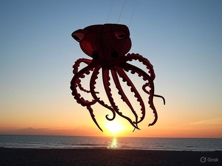 私はGrokに『海にいる章魚が凧となって空を舞っているイメージを描いて』とリクエスト🐙🪁